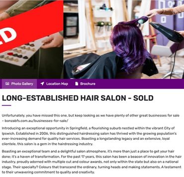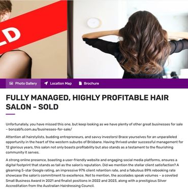 Salons for Sale is a dedicated team within Bonza with years of salon sales experience. With hundreds of salons sold nationwide, enabling salon owners to sell their salon from as little as $4,000 plus GST in commission, saving thousands. If you are looking to sell your salon, then place your trust in the 5 Star rated specialist brokers! Only 4% commission sale of beauty salons!